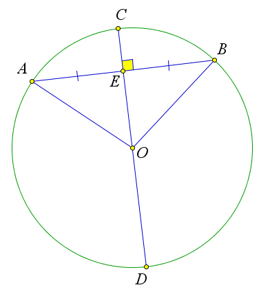 Рассмотрим окружность с центром $O$, в которой хорда $AB$ пересекает диаметр $CD$ в точке $E$.